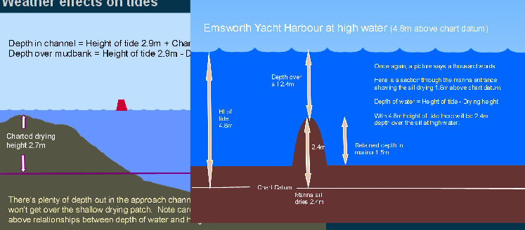 Relationship between height of tide, depth of water, and clearance under overhead obstructions