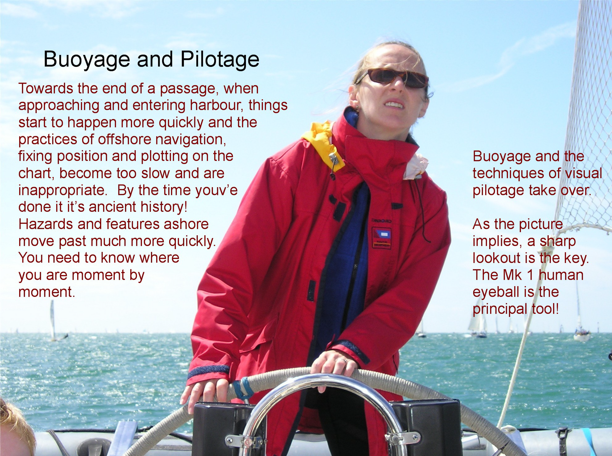 As we approach the end of the navigation section so, appropriately, we turn to methods which take over as we approach and enter port at the end of a passage. Things start to happen much more quickly and techniques of visual eyeballing take over from navigation by plotting on the chart which would take too long.