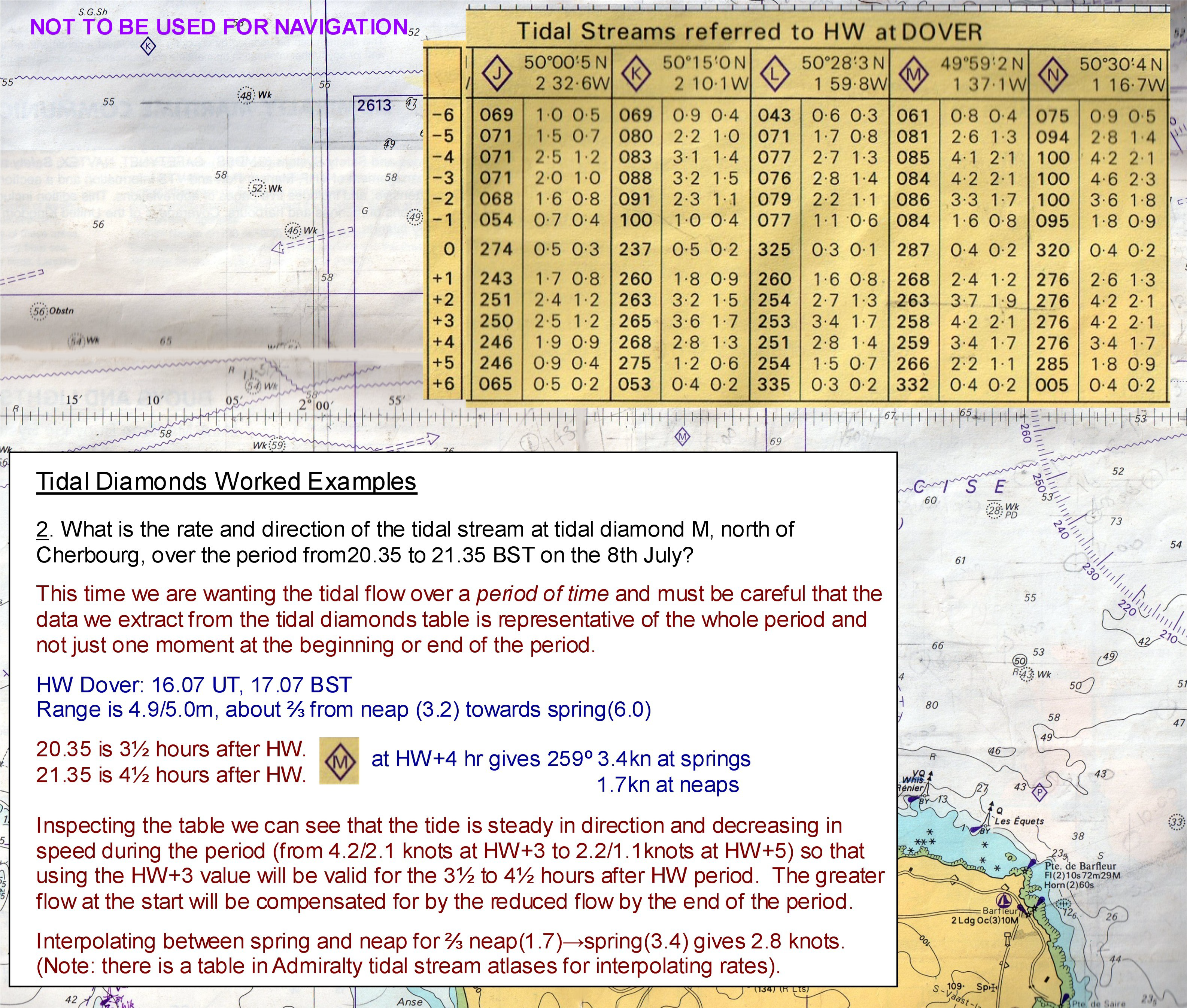 Tidal streams, tidal diamonds and tidal stream charts and interpolation table.